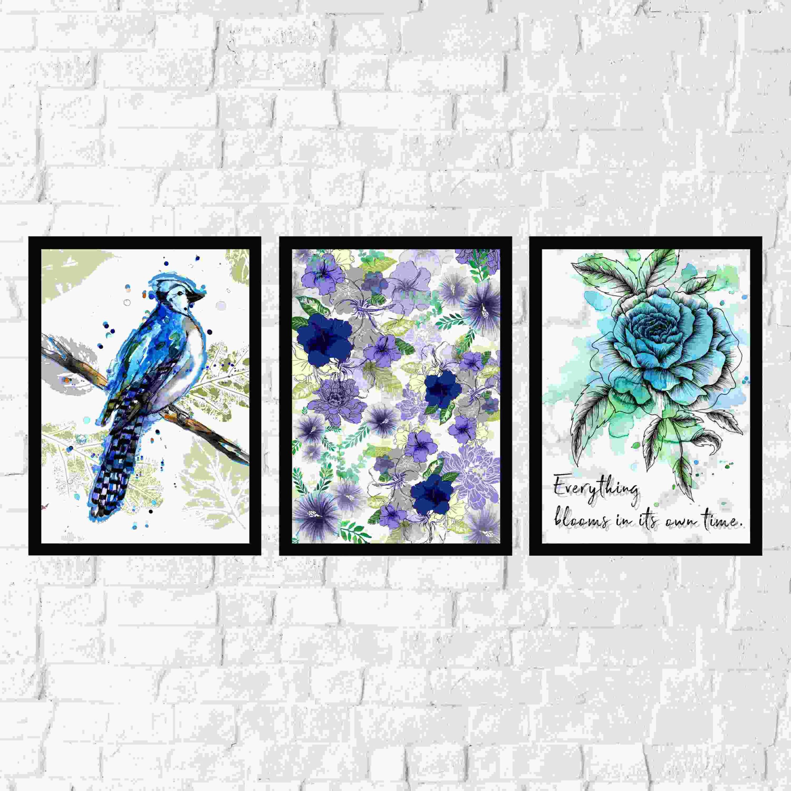 Bring harmony, elegance, and a touch of nature into your home with this soothing set of 3 watercolor prints. Featuring a serene bird, a delicate rose, and an intricate floral pattern — this trio creates a calming, cohesive vibe perfect for any modern or rustic space.